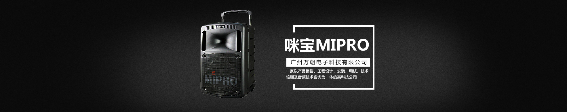 廣州萬朝電子科技有限公司成立于2008年,公司主要是一家以產(chǎn)品銷售、工程設(shè)計、安裝、調(diào)試、技術(shù)培訓(xùn)及音頻技術(shù)咨詢?yōu)橐惑w的高科技公司。主要代理銷售產(chǎn)品包括:咪寶MIPRO,舒爾SHURE,森海塞爾SENNHEISER,BOSE專業(yè)音箱,JBL系列音箱,皇冠CROWN功放,QSC功放,聲藝SOUNDCRAFT調(diào)音臺,雅馬哈YAMAHA,DBX及AKG等周邊器材。